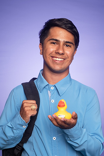 “As a computer science major, I often use a coding strategy called rubber duck debugging, a method in which you explain your code to an inanimate object, such as a rubber ducky, until you realize where you’ve made your mistake. So, I keep a rubber ducky in my backpack at all times. It might sound silly, but it really helps!”