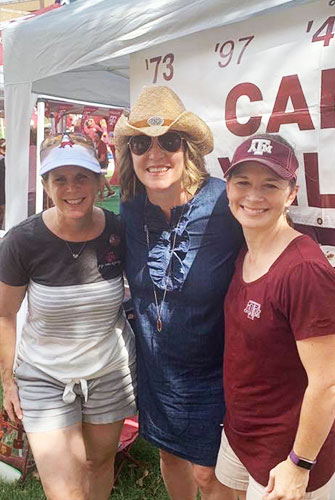 Cochran (left) enjoys Texas A&M football tailgate time with Alpha Delta Pi sisters Leigh Manning '00 (center) and DaLynn Feely '00.