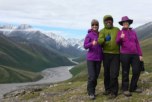 Cochran (right) enjoying the great outdoors by the Kongakut River in Alaska with two of her Aggie friends, Ann Marie Prazak '98 and Erich Hafenmaier '98.