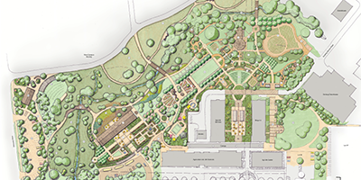 An artistic rendering of The Gardens at Texas A&M University, a 27-acre garden that will educate and rejuvenate Aggies for generations to come.