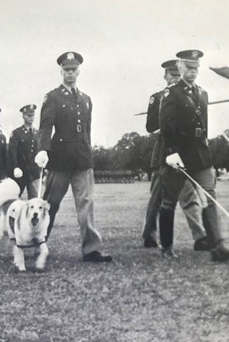 The Mascot Company, E-2 is responsible for caring for the First Lady of Aggieland. Al often helped escort Reveille II to events and cared for her during Corps trips. On one visit to Dallas, the revered mascot came home with Al to meet his mother. “You would have thought she was meeting the president of the United States!” Al recalled. “She bragged to all her co-workers about babysitting Reveille.”