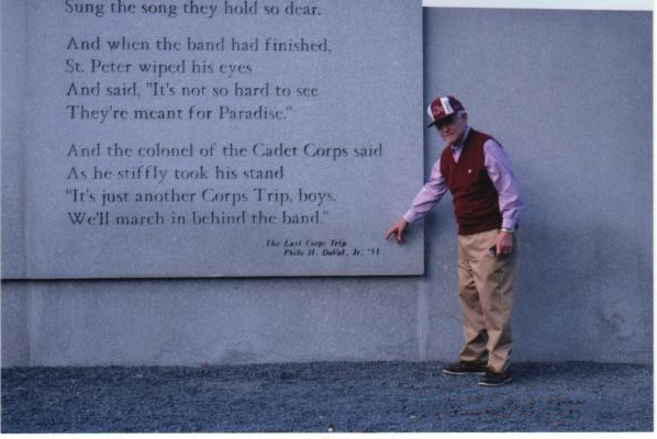 Philo “Buddy” DuVal ’51, a studious mechanical engineering cadet, heard the remark and was appalled. Something had to be done, so Buddy began scribbling a response: a poem about how the cadets made a trip to heaven, not hell. Little did he know that his retort to a rude professor would become ingrained in Aggie culture forever as “The Last Corps Trip.”