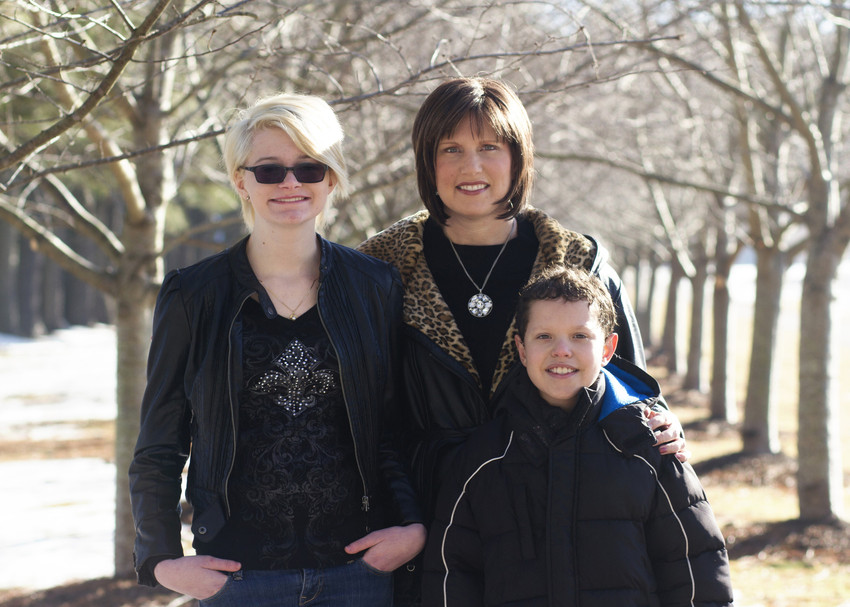Charity Breidenbach ’02 (center) and her children Lizzy and Clay