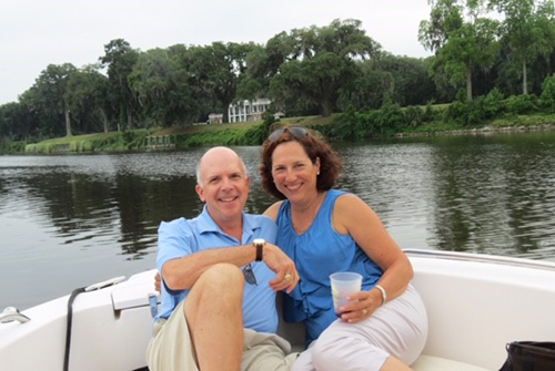 The couple met when Jim was a senior and Christina was a freshman. They got married a year later, after Jim graduated with a degree in industrial marketing. Christina transferred to the University of Texas at Arlington to finish her journalism degree while Jim entered a successful industrial distribution career. After a long tenure representing manufacturing company Swagelok, Jim retired in 2013 and the couple moved to their current home in Savannah, Georgia.