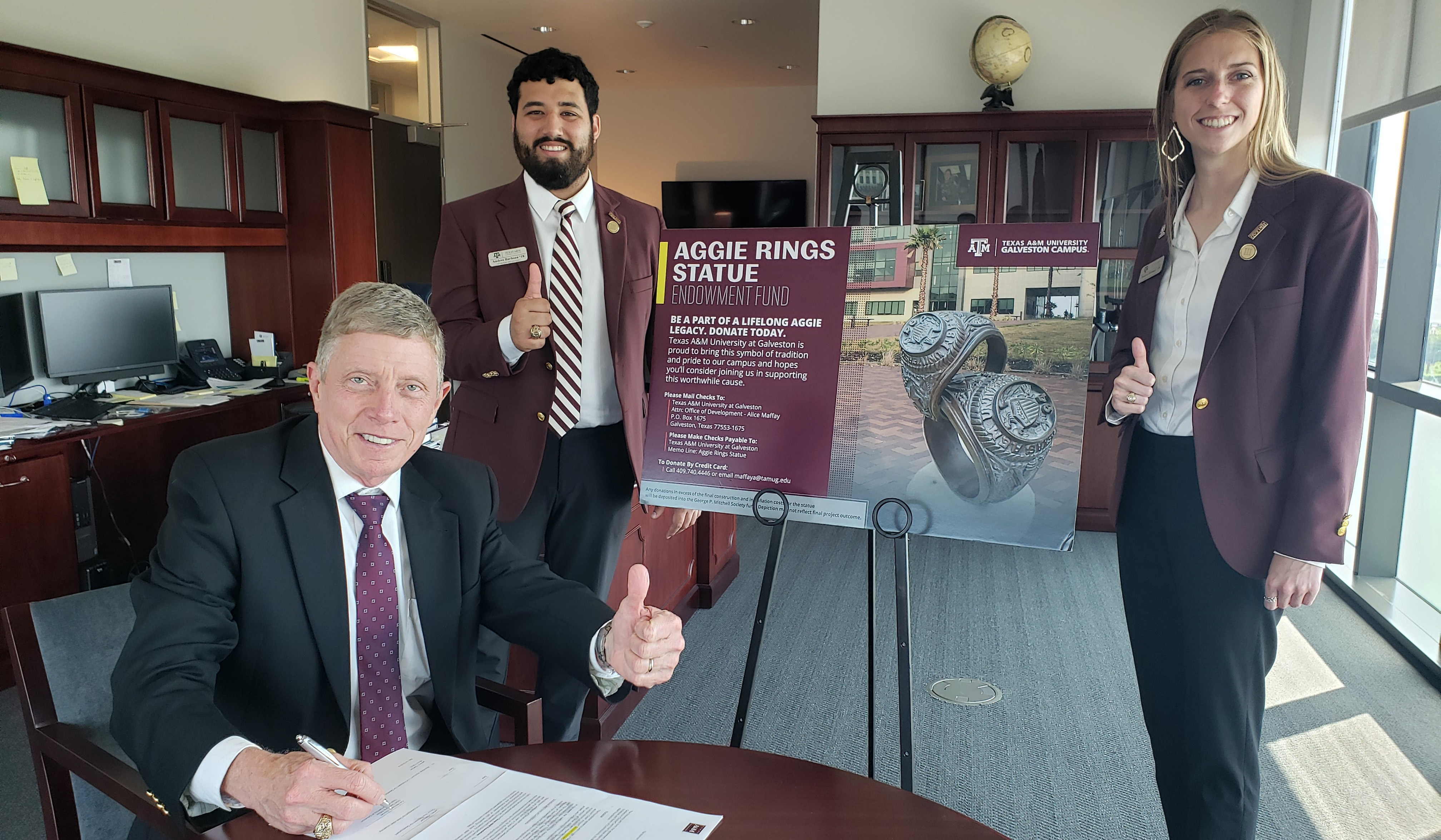 “There was a time when I couldn’t move forward in school or in life,” said the appreciative patient, who flashed a “Gig ’em” from his intensive care bed after surgery. Now, the 28-year-old is celebrating his graduation from the Texas A&M University Galveston Campus this month with a Master in Maritime Administration and Logistics, which was slightly delayed due to his diagnosis and treatment. He also looks forward to marrying fiancé Caroline Abbott ’13 and is applying to jobs in port operations.