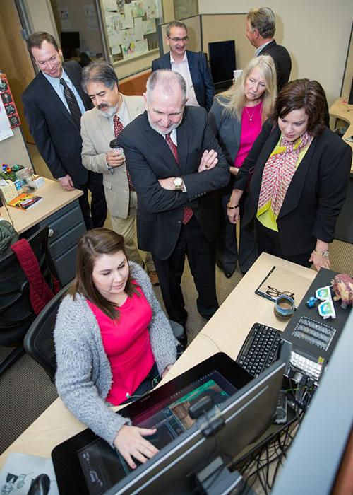 Prior to Triseum’s Jan. 23, 2017 endowment announcement, Texas A&M president Michael K. Young toured the company’s offices, met employees and learned about games currently under development. The company, Thomas told President Young, is eager to work more closely with university departments, identifying educational needs and developing fun and exciting games that fulfill them.