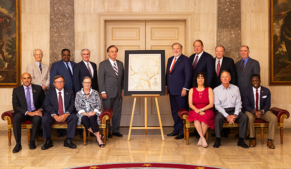 Texas A&M Chancellor John Sharp ’72, the university’s Board of Regents, and Bonnie and Otway Denny ’71 enable acquisition of 1830 map of Texas.